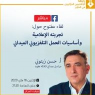 وفي ليلة أخرى، التحق بنا الزميل حسن زيتوني، حاملا معه خبرة سنوات طويلة في العمل الصحافي الميداني، بعد تغطيته للكثير من الأحداث الساخنة حول العالم، حدّثنا عن أساسيات العمل التلفزيوني الميداني.