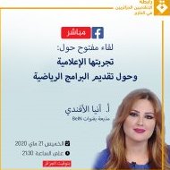 كما انضمت إلينا الزميلةآنيا الأفندي، محدثة المتابعين عن تجربتها الإعلامية من التلفزيون الجزائري وصولا إلى قنوات بي إن سبورت، كما كان اللقاء فرصة للحديث عن فن تقديم البرامج الرياضية.